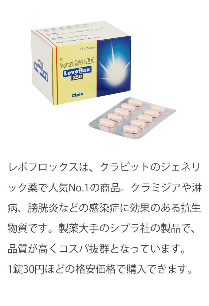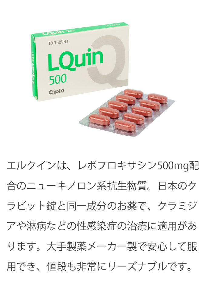 有効成分のレボフロキサシンはニューキノロン系抗生物質と呼ばれ、服用すると病気の原因菌を死滅させ、感染症に対する治療効果が認められています。忙しかったり、恥ずかしくて医者に行けない人には、個人輸入できるクラビット・ジェネリックがお勧めです。クラビットのジェネリック医薬品(後発品)なので、開発費用がかからず価格が安いのがメリットです。インドのムンバイにあるシプラ社が製造・販売しているクラビットジェネリック「得るクイン」は、多くの接触感染に効果を発揮する抗菌薬です。日本の病院やクリニックでも処方されているクラビットのジェネリック医薬品なので、クラビットよりも安い表示価格で購入することができます。